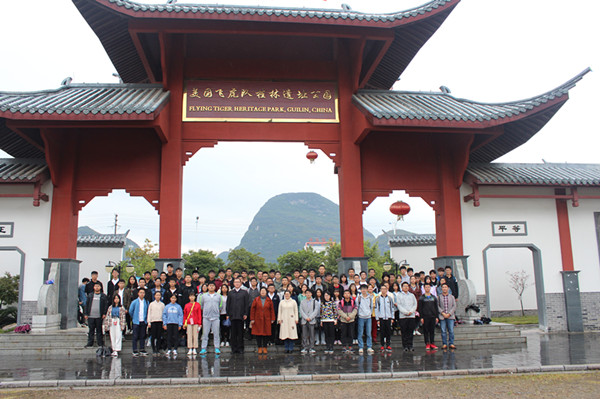 11月11日,马克思主义学院组织百名师生参观美国飞虎队桂林遗址公园,开展“缅怀碧血英魂,培育爱国精神”社会实践活动。实践活动中,同学们来到美国飞虎队桂林纪念馆,走进“历史的天空”、“虎啸云端”、“飞虎...