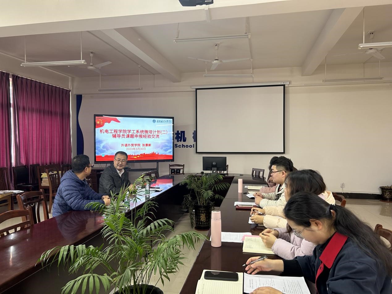 为持续推进学院辅导员队伍专业化、职业化建设,3月30日上午,机电工程学院特邀外语外贸学院党委副书记张景新围绕“辅导员课题申报工作”主题,在巡天楼205会议室为学院辅导员队伍开展了培训交流。会上,他建议各...