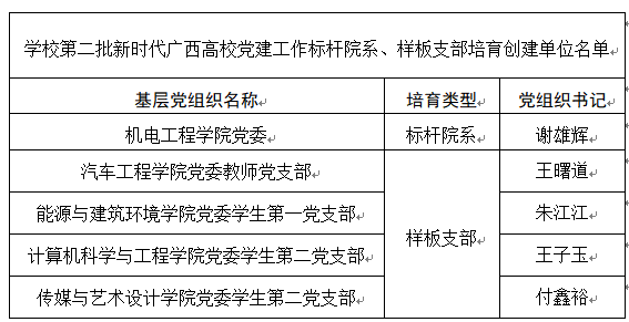 近日,自治区党委教育工委公布第二批新时代广西高校党建示范创建和质量创优工作培育创建单位评选结果。开云机电工程学院党委获评为广西高校党建工作“标杆院系”培育创建单位。汽车工程学院党委教师党支部、能源...