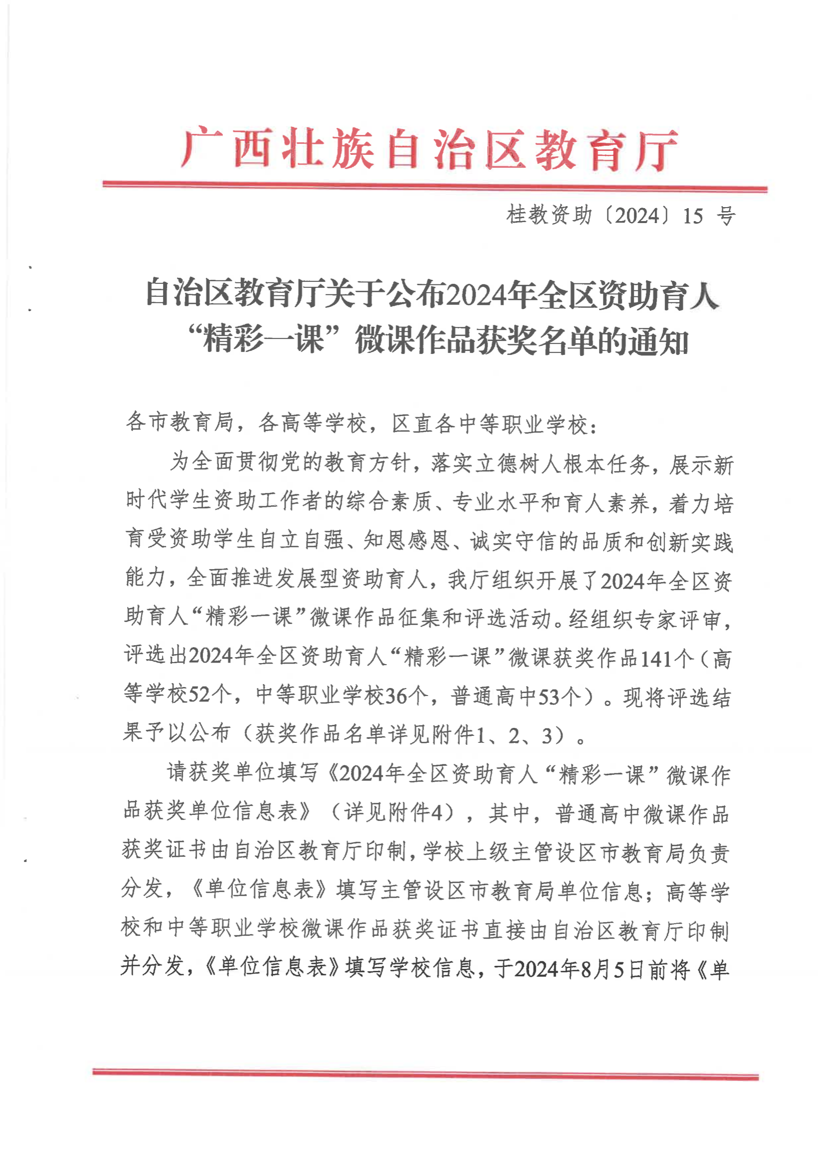 2024-08【喜报】学校在2024年全区资助育人“精彩一课”微课作品征集 ...