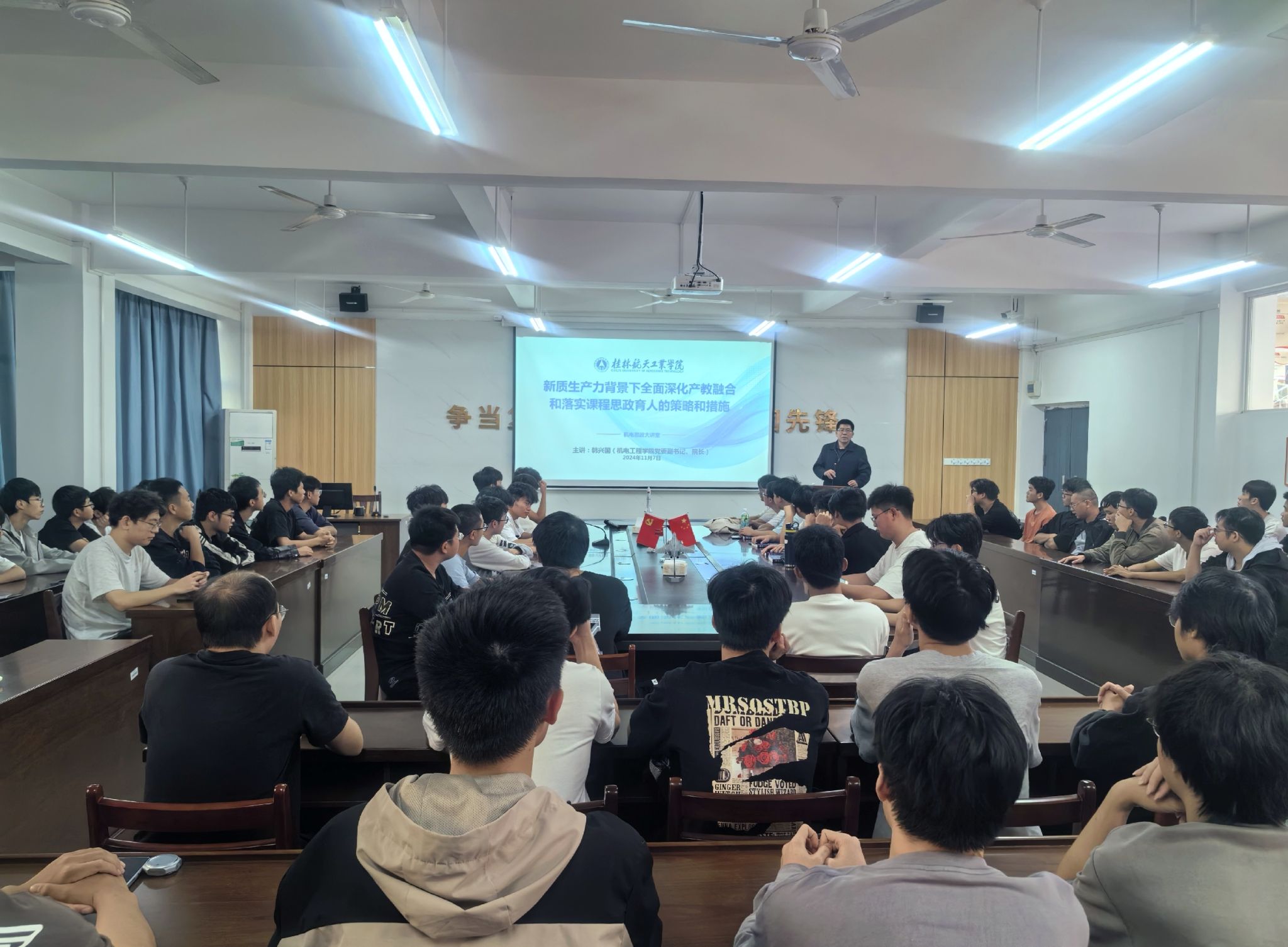 11月7日,机电工程学院秋季学期机电思政大讲堂第二讲开讲,本次主题为《新质生产力背景下全面深化产教融合和落实课程思政育人的策略和措施》。机电工程学院院长韩兴国主讲,吸引了100余名师生参与。韩兴国围绕新...