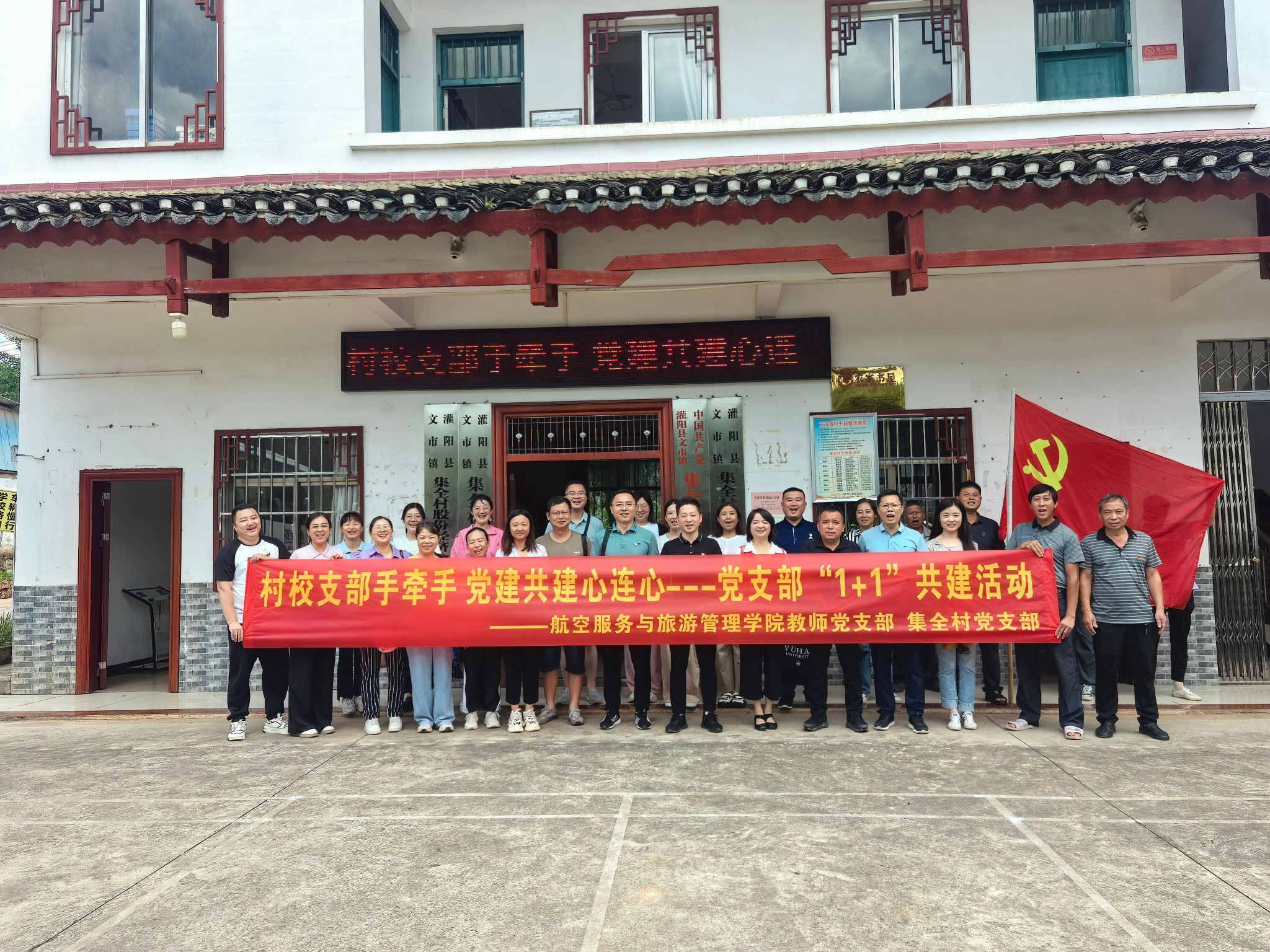 为庆祝中国共产党成立104周年,深化党建引领作用,推动基层党组织互融共建,助力乡村振兴与文旅融合发展。近日,航空服务与旅游管理学院教师党支部赴文市镇集全村开展“1+1”党支部互融共建系列活动。通过座谈交...
