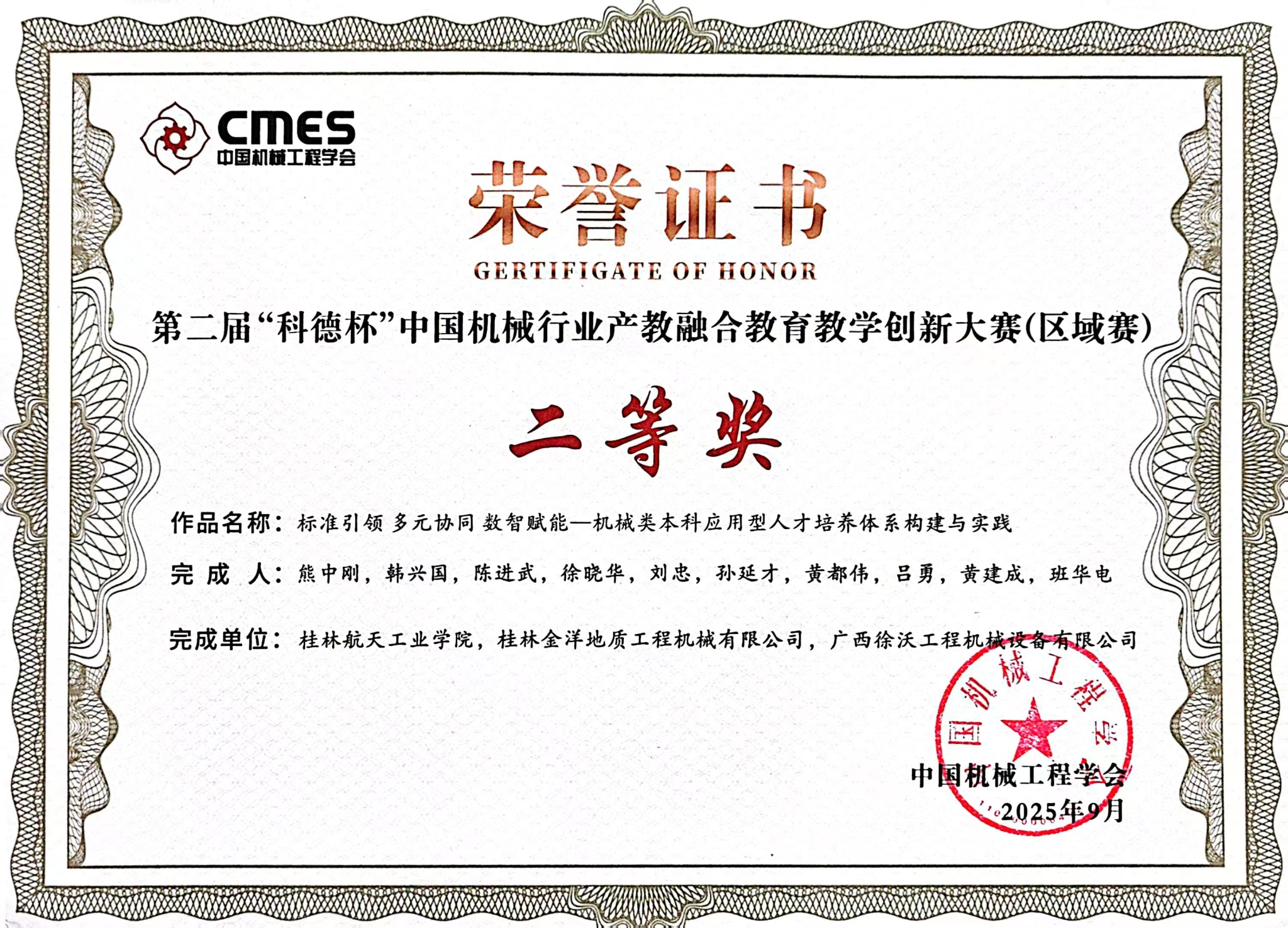 2025-11【喜报】机电工程学院在第二届“科德杯”中国机械行业产教融...