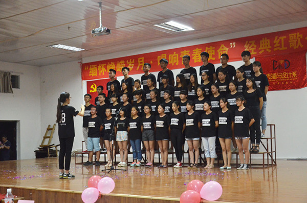 6月29日晚,外语系和传播与设计系在北校招聘大厅共同举办以“缅怀峥嵘岁月,唱响青春使命”为主题的红歌合唱比赛。