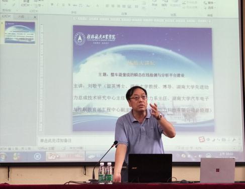 刘敬平教授从车用动力总成的现状及发展趋势、车用动力总成能量流及控制参数的整车在线检测与分析、整车以及动力总成能量流的仿真与优化三个方面给在场师生深入阐述了乘用车用动力的现状和发展趋势、面临的挑战、控制优化的关键技术和实现方法。刘教授的学术讲座紧扣业内前沿技术、内容丰富、专业性强,为专业师生清晰了解专业前沿知识和专业最新发展动态,明确今后学习、研究的主要方向提供了十分有益的帮助。