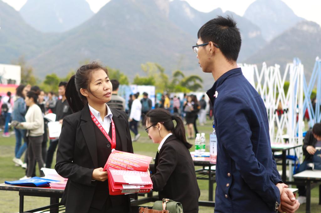 学校工作小组通过上门走访、电话邀请、信函邮寄等多种方式广泛邀请用人单位参会,招聘会还得到了桂林市人才市场和桂林市桂聘网的大力支持。此次招聘会各用人单位报名踊跃,其中桂林市以外的用人单位占到近30%,共提供就业岗位7000多个,毕业生供需比达1:2。