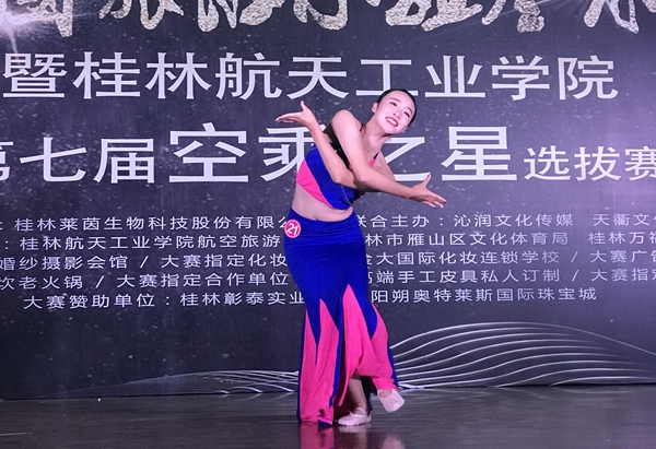 比赛中,选手们充分释放天性,激发潜能,花样百出的表现为比赛增添了诸多亮点。选手使出了走秀、歌舞、武术、乐器演奏、朗诵等十八般技艺征服了在场评委及观众。选手的表演紧贴旅游及空中乘务专业特色,将空中乘务专业技能展示与少数民族舞蹈、乐器演奏的有机结合,使在场观众充分领略到了桂林国际旅游城市的魅力。
