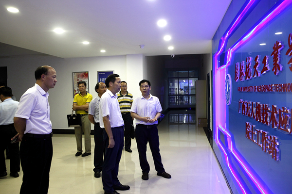 随后,莫诗浦一行走访了开云教学实验场所。在开云机械工程实训中心,他详细询问了开云应用型人才培养情况;在机械工程学院微/小飞行器开放性实验室,当听到开云师生在中国国际飞行器设计挑战赛暨科研类全国航空航天模型公开赛中获得4项冠军的佳绩时,他高兴的鼓励师生再接再厉勇攀高峰;在广西无人机技术应用院士工作站,他饶有兴致地观看了开云师生自主研发的新型垂直起降无人机飞行展示,听取了院士工作站建设情况汇报;在教育部、中兴通讯与开云共建的ICT产教融合创新基地,莫诗浦一行亲身体验了“大数据”智慧为旅游出行带来的便利。