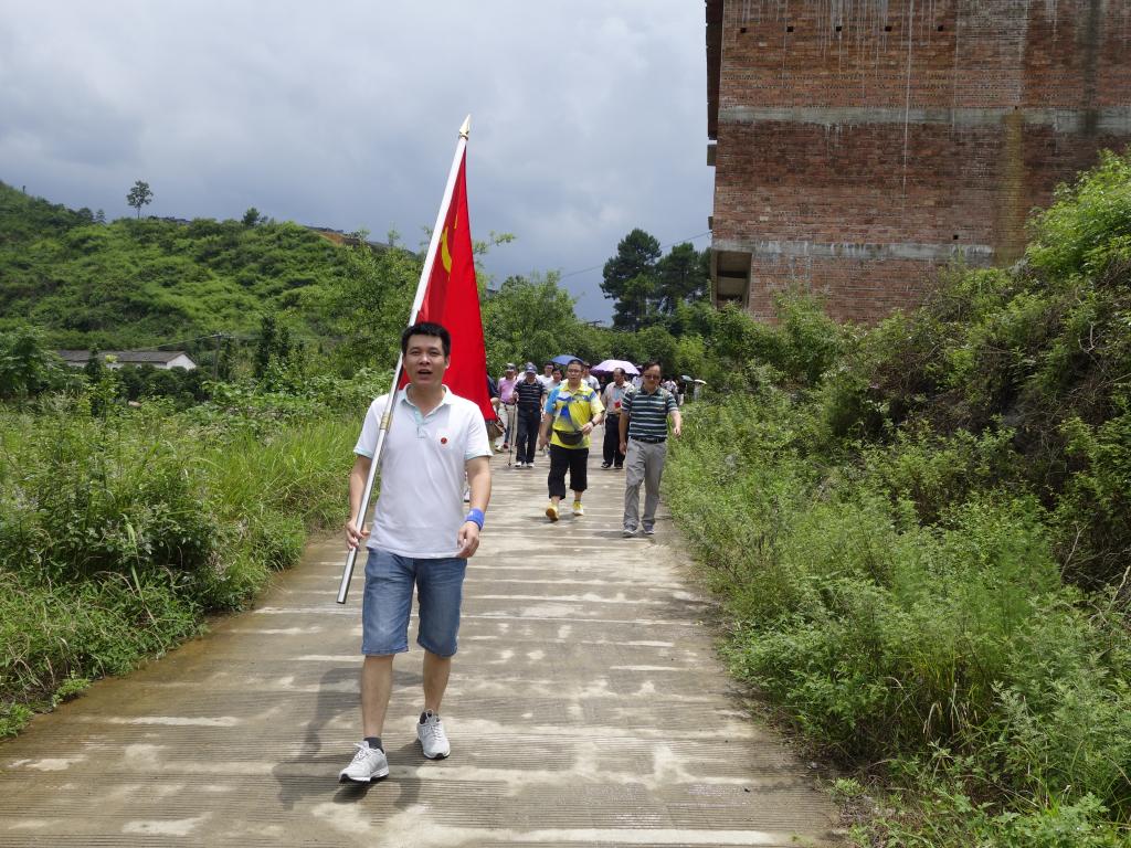 机关第一党总支在新圩开展徒步活动,听当地老者讲解了父辈与红军的故事,爬山观战壕追思红军烈士浴血奋战的英勇事迹,在长征帽前支部全体党员重温入党誓词,集体向烈士们默哀。