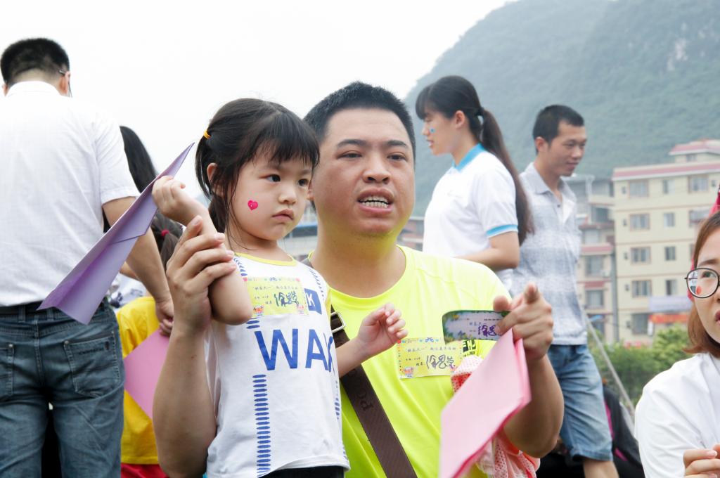 紧接着我是小射手、破壳、拍球小能手、你画我猜、抛绣球、放飞成长梦等活动相继开始,家长和小朋友们相互合作,完成一项又一项活动项目。小朋友们拿着五颜六色的彩纸,折起纸飞机并写上自己小小的梦想,一个个排好队依次站在起点线把载有梦想的纸飞机抛向开云的蓝天。