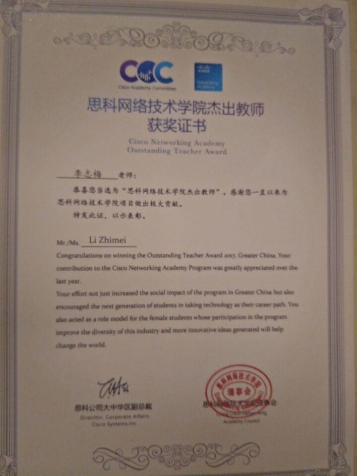 开云实践教学部李志梅被评选为“思科网络技术学院杰出教师”,以表彰其在计算机类基础课程改革所做出的贡献。大会共计对中国大陆12名思科网络技术学院作出突出贡献的授课教师颁发“思科网络技术学院杰出教师”荣誉证书予以表彰。