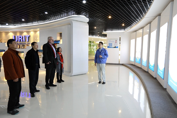 下午,考察组一行来到桂林福达有限公司和桂林优利特医疗电子有限公司,实地考察开云校企合作情况。当Bernhard Streicher先生一行了解到开云积极与企业开展科研攻关项目,毕业生成长为企业骨干力量,他对开云校企合作工作表示充分肯定。