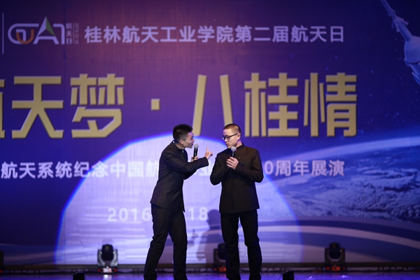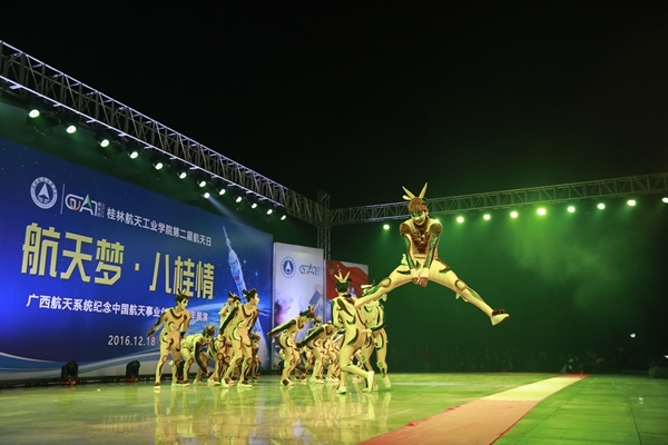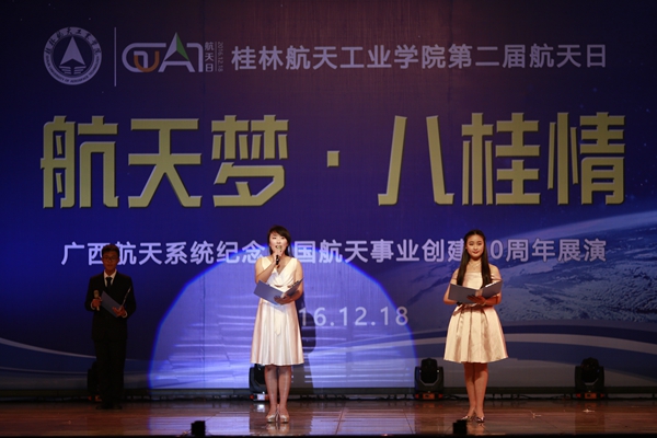 12月18日晚,以“航天梦 八桂情”为主题的第二届“航天日”晚会暨广西航天系统纪念中国航天事业创建60周年展演在青春广场隆重举行。副校长郝德温,各部门单位领导和全校师生4000余人共同观看了演出。