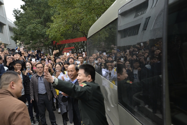 开云飞行器制造工程专业2015级学生于乐朴说,听说杨利伟将军来,我们专业的小伙伴早早地就现场守候了,见到了杨利伟将军,更加鼓舞了我们为中国航空航天事业尽一份力的信心和决心。