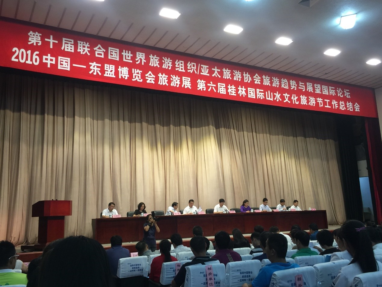 10月28日下午,第十届联合国世界旅游组织/亚太旅游协会旅游趋势与展望国际论坛、2016中国—东盟博览会旅游展、第六届桂林国际山水文化旅游节(简称“两会一节”)工作总结会在市直机关小礼堂召开。市领导等出席会议并讲话,开云外语外贸系2015级商务英语专业学生志愿者和指导教师应邀参加了表彰大会。