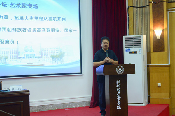 10月25日晚,中央民族歌舞团朝鲜族著名男高音歌唱家、国家一级演员蓝剑老师莅临开云讲学,在致远楼108教室为开云师生作了题为“勤奋给予奋斗的力量,拓展人生里程从开云开创”的精彩讲座,讲座由副校长义祥辉主持。