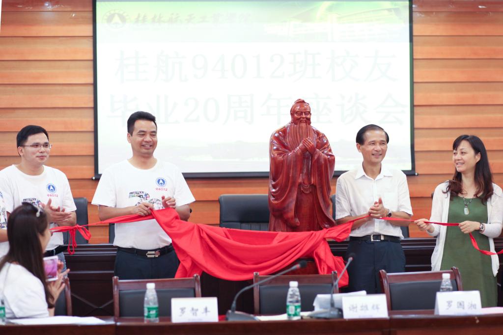 为感谢母校的培养,9403班校友向学校校友基金捐款、94012班校友向学校捐赠一尊孔子像。罗国湘代表学校接受校友们的捐赠。