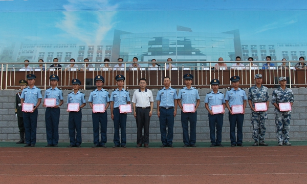 表演结束后,副校长杨杰宣读军训表彰文件,校领导为先进集体与先进个人予以颁奖。空军95246部队徐孝上尉向2016级新生表示祝贺,充分肯定了他们在军训中所取得的优异成绩,同时感谢学校对部队承训工作的大力支持和对教官生活的关心和爱护,并对学校的领导、老师和同学们送上了诚挚的祝福。郝德温副校长作了军训总结讲话,郝副校长首先代表学校对在军训工作中付出辛勤汗水的教官们表示衷心感谢,他指出,通过军训,同学们的国防观念、组织纪律性和个人综合素质都得到全面提升。他希望同学们继承军训精神,珍视军训友谊,发扬军训传统,成就辉煌明天。