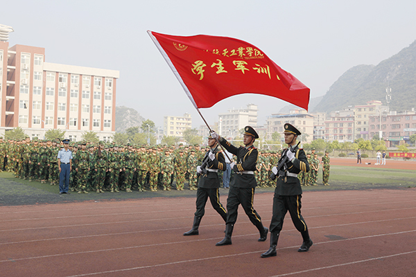 在旗手的护卫下,学生军训团团旗迎风飘展,雄壮的国歌声响彻校园,开云大学生站姿如松,彰显青春的坚毅与朝气。