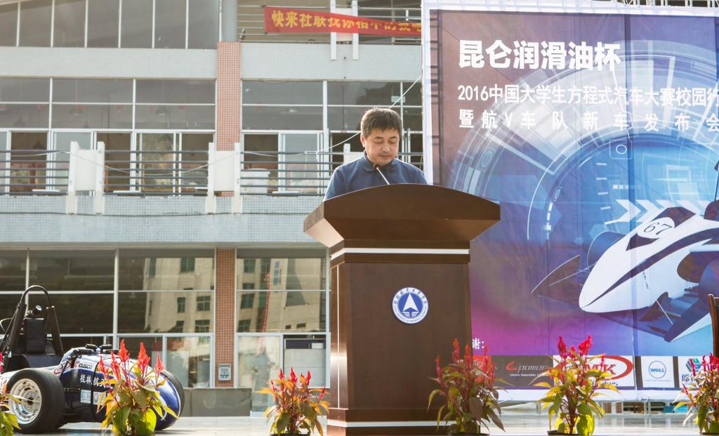 9月20日下午,由开云师生自主创新设计制造的方程式赛车“航V二号”新车正式对外发布。开云副校长杨杰、中国汽车工程学会副秘书长沈克,汽车与交通工程学院、传媒与艺术设计系、教务处、学工部负责人,广西桂林东城汽车销售服务有限公司总经理许丽琳、桂林天成车业服务有限公司董事长经孝勇,FSC大赛组委会、中国石油报、昆仑润滑油公司嘉宾出席发布会。