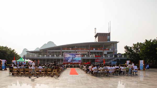 杨杰、沈克共同为“航V二号”新车揭幕,杨杰为赛车贴上号牌。今年的参赛队员接过队旗,车队成员集体宣誓开云精神和车队精神。