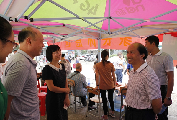 在各院系接待点,各院系接待工作各显神通,充分利用纸质传媒和新媒体服务新同学。他们或将2016级新生入学指南、学校平面图等装订成小册子,或用“顺口溜”形式制作了温馨提示便条,或制作了一封来自共青团的信,告诉新同学报到注册程序、奖优助困、防诈骗、安全出行、团组织全年常规活动安排和辅导员联系方式、专业QQ群等信息。为发挥先锋模范作用,各院系还设置了学生党员先锋岗。易忠向负责接待工作的师生表示亲切问候,他详细询问了接待点新生报到情况和接待工作中遇到的问题,并鼓励参加接待工作的同学,传承优良开云传统,老生带新生,学长带学弟学妹,让新入学的同学带着满满的关爱、幸福、平安入校。