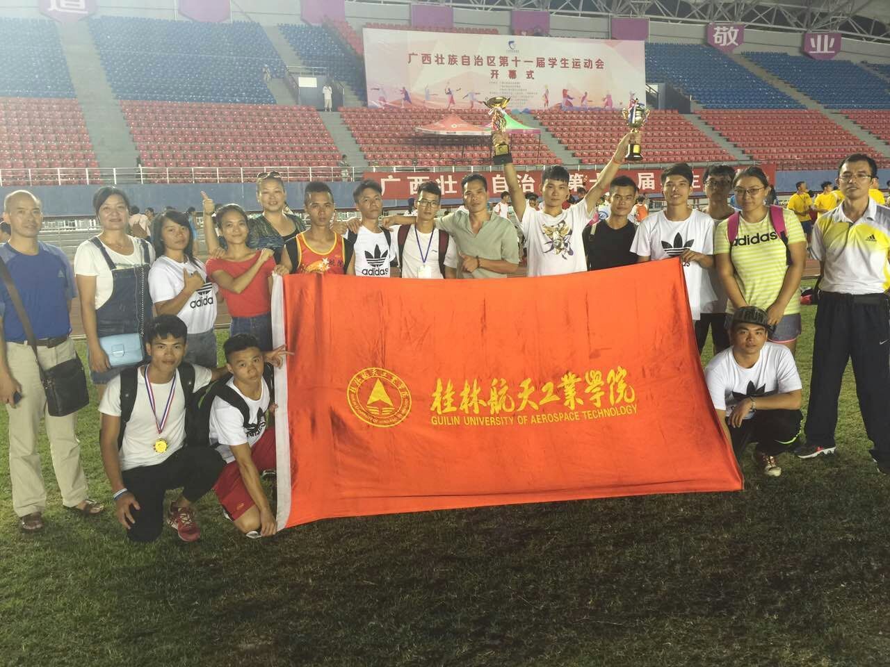 2016年7月9日至14日,由广西壮族自治区教育厅、体育局和自治区共青团委员会联合主办的第十一届学生运动会在广西师范大学雁山校区隆重举行。运动会有来自全区65所高校的3000余名运动员参加,比赛项目包括田径、篮球、足球、健美操、啦啦操、乒乓球、武术、民族体育、羽毛球等。开云代表队在本届运动会中共取得了8金、4银、2铜的佳绩,其中,男子100米、男子跳远、男子4×100米接力均打破赛会纪录。本届运动会中所获得的佳绩彰显了开云体育健儿高超的竞技水平及顽强拼搏、奋发有为的精神面貌,凝聚了运动健儿和教练们的辛勤付出。