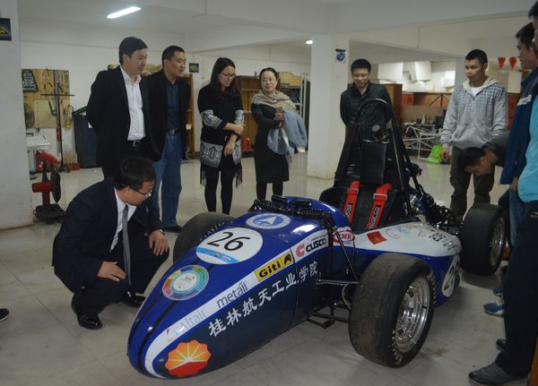 会后,考察团参观了校园,并实地考察了汽车与交通工程学院汽车实验中心,参观了航V车队工作室,对学校的汽车实训设备及在教学中着重培养学生的动手能力及创新思维方面给予了赞赏。