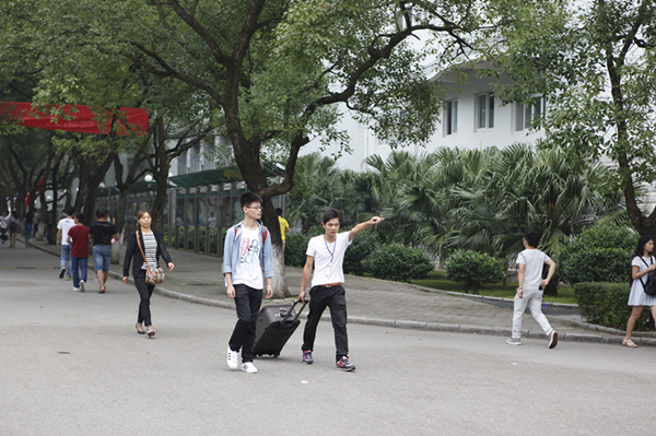 校道上站着一位皮肤黝黑的新生家长,手里提着孩子的两大袋,汗水已经湿了衣裳,但是脸上挂着的笑容掩饰不了他的喜悦,他告诉记者,孩子能够来到桂林这样山美水美的地方上学,家里人非常的欣慰,到学校后一路上老师、同学的热情周到地服务,更是让人暖心,所以,非常放心让孩子留在这里学习,希望四年后,孩子能够真正的学有所长。