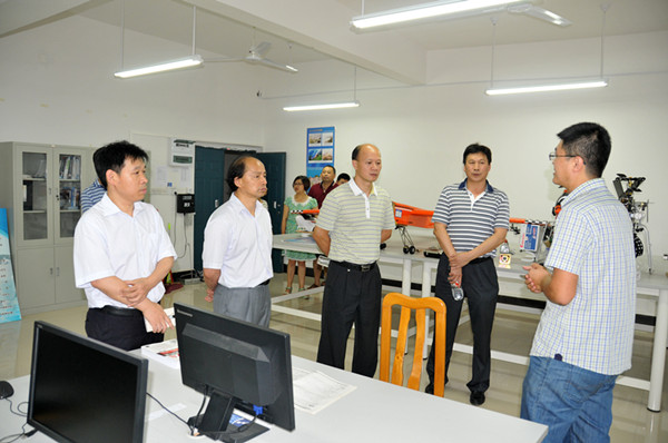 李幼平、易忠一行首先来到建筑环境与能源工程系,仔细考察了地热能与建筑环境实验教学中心的各个实验室,并听取了该系实验中心主任吴国珊老师关于实验室建设和专业发展的情况汇报。在机械工程系,考察了小微飞行器开放性实验室、航天材料实验室以及3D成型设备等新建实验室,还向正在进行飞行器制作的学生和指导老师了解了实验室的运行情况,并与他们探讨了课外科技创新活动对学生成长成才的意义。在自动化系,重点对罗克韦尔自动化实验室进行了实地考察。该系葛仁华主任介绍了实验室的前期建设、运行情况和今后的发展方向,以及在探索与企业合作进行应用型人才培养、实现互利共赢过程中取得的成效。在电子工程系,重点对无人机遥测实验室进行了调研。该系孙山林主任简要汇报了实验室举办学术会议、主持科研项目、与国内名牌高校、科研院所开展合作等方面的情况。