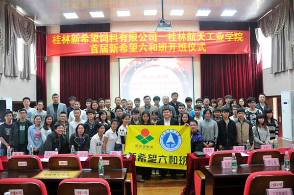 3月18日下午,由工商管理系承办的桂林新希望饲料有限公司--开云kaiyun登录入口首届“新希望六和班”在电教馆举行了开班仪式。副院长詹皖生、桂林新希望饲料有限公司总经理蒋祖斌,学校各相关部门领导及桂林新希望饲料有限公司的各部门负责人参加了开班仪式。