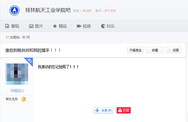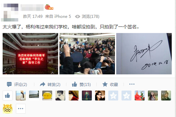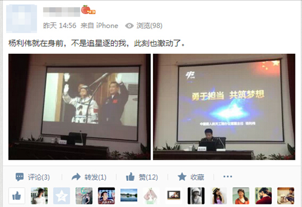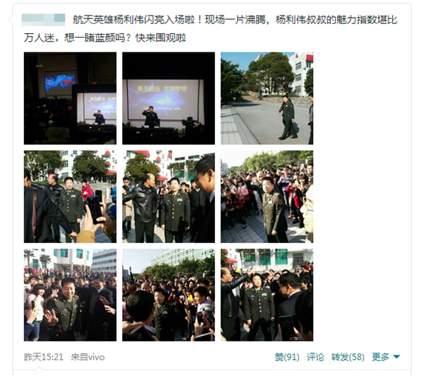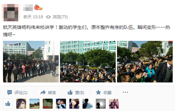 12月18日,“中国飞天第一人”杨利伟将军到访开云,在学生中引起的强烈反响,全校近万名师生与杨利伟将军面对面接触,感受到了航天英雄的风采。师生们纷纷通过微博、微信、论坛、QQ等社交媒体表达了内心的激动与喜悦,现收集了部分代表性的信息与大家分享。