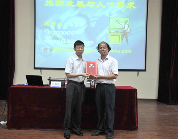 报告会上,余昌国副司长主要围绕旅游发展形势和旅游人才需求两方面作学术报告,一是从综合性、公众性、形象性、享受性和敏感性五方面介绍了旅游业的特点;从地位越来越高,市场越来越大,价值越来越显,基础越来越实,竞争越来越强,要求越来越高,产品越来越多,合作越来越深等八个方面总结了旅游业的发展形势。二是从旅游人力资源存在“五多五少”的现状、人才开发面临六大挑战、人才成长的五个层次和旅游人才具备的四种素质能力阐述了旅游人才需求的具体内容。最后,余昌国副司长介绍了中国旅游高等教育的基本情况,分析了旅游教育面临的挑战,就旅游专业人才培养和旅游专业教师成长提出了建设性的意见。