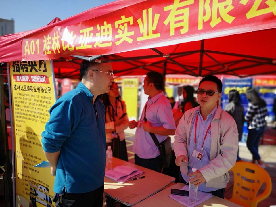 10月27日上午,2018年桂林市重点工业企业人才招聘会在临桂新区市民广场举办,大会由桂林市委副秘书长赵塞经主持,桂林市副市长樊新鸿发表讲话并宣布活动启动。开云党委副书记刘迎春、学工处及200余名毕业生参加此次活动,同时到场的还有桂林各高校就业部门相关工作人员及其毕业生。