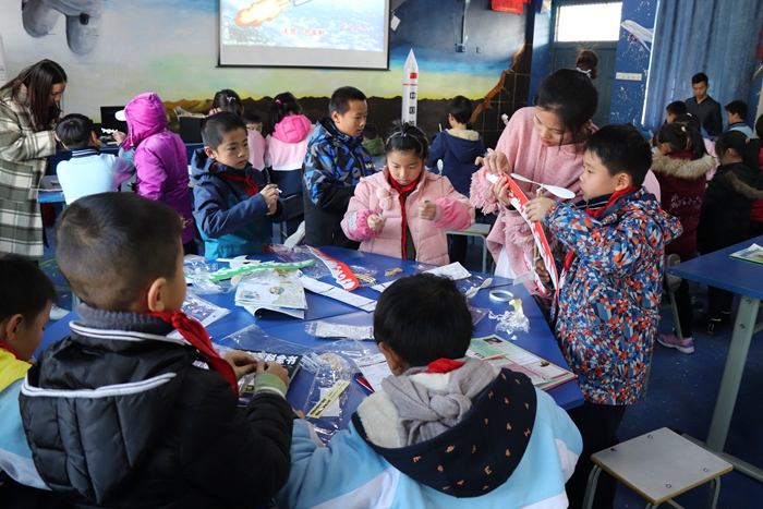 课堂上,志愿者团队用生动活泼、浅显易懂、形式多样方式向孩子们讲解了什么是航天器和航空器、航天与航空区别等航天科普知识,使小朋友们更近距离接触航天航空知识。通过与小朋友问答互动的方式,小朋友积极回答问题,对航天航空知识充满了喜爱,小朋友们在轻松愉悦的氛围中学习航天科普知识,弘扬航天精神和传承航天文化。大家一起观看了“中国航天,超燃2018”航天精神宣传视频,将航天精神文化更加一步深入小朋友,在他们的心里播种下一颗航天的种子。活动中,志愿者与小朋友们制作橡皮筋飞机,加强了小朋友的动手能力,一起放飞我心中的航天梦。
