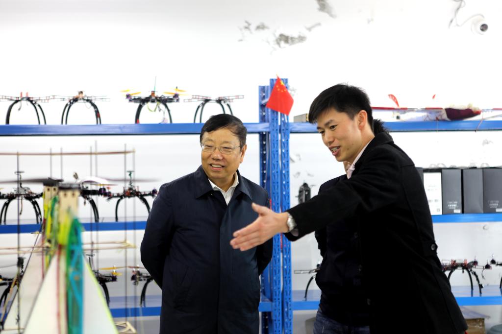 “你们这个是什么产品?用什么材料制作的?”在无人机技术应用院士工作站,赵乐秦详细了解由开云师生设计制作的多旋翼无人机等高新技术设备,“设计很精巧!希望你们能继续开发更多的高新技术产品。”赵乐秦连声称赞,并鼓励开云师生进一步提升高新技术研发能力,积极投身桂林高新产业建设。