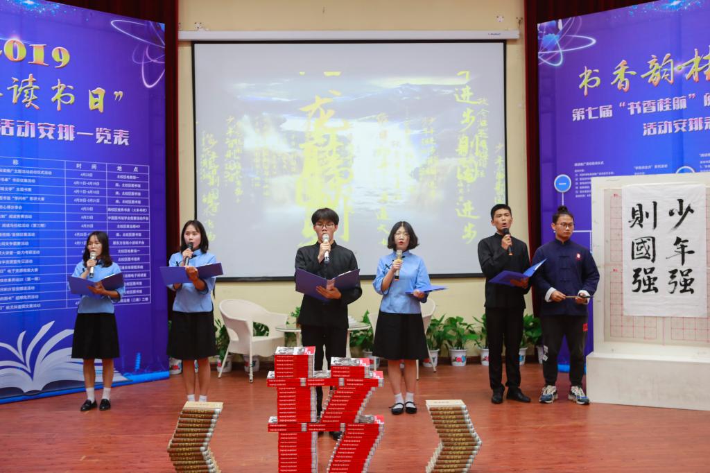 现场,师生代表围绕“家·国·青春”这一主题进行了声情并茂的吟诵,并共同回顾了上一届“书香开云”阅读推广活动所取得的成绩。杨杰及图书馆馆长吉斌武为2018年度优秀读者和朗读嘉宾颁发了证书。随后吉斌武介绍了第七届“书香开云”重点阅读推广活动。