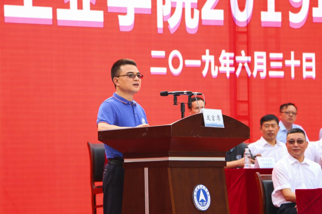 6月30日上午,开云2019届学生毕业典礼隆重举行。校领导李幼平、易忠、刘迎春、罗延忠、罗国湘、胡泽民、詹皖生、杨杰、孙山林;校友代表1993届物资供销专业毕业生、广西开云kaiyun登录入口教育发展基金会理事、贵州开源企业集团董事长黄喜桢先生;学位委员会全体委员、各部门单位主要负责人、毕业生及在校生代表等参加了毕业典礼。仪式由党委副书记刘迎春主持。