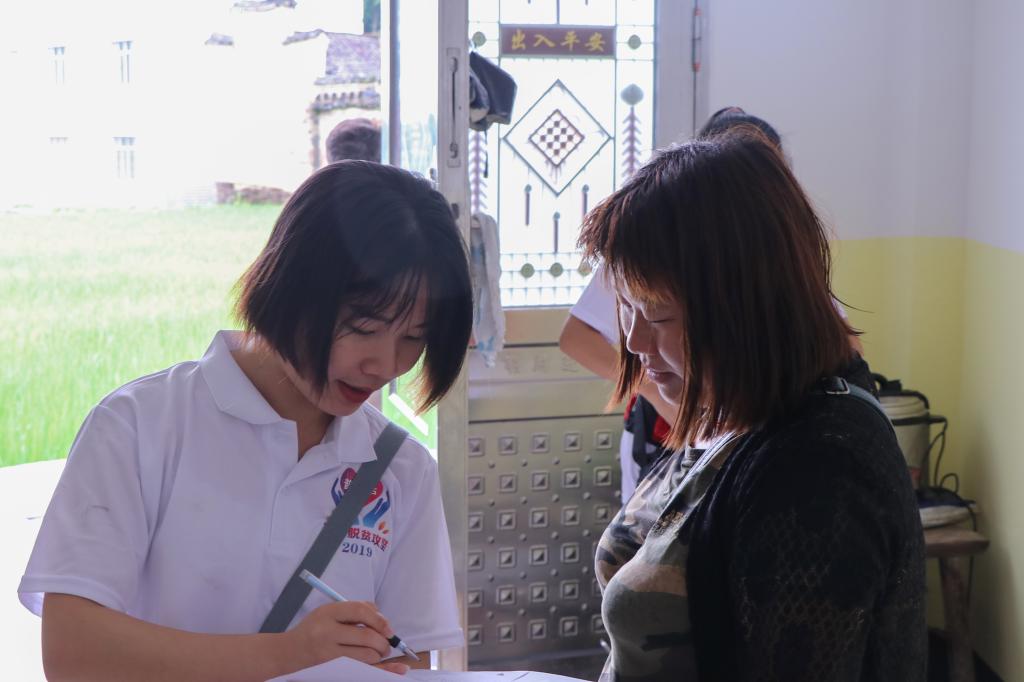十多名实践队成员的到来,成为村子的一件大事。为切实了解当地村民们的普通话普及程度,调研组的队员们深入当地村民家中,以发放调查问卷等形式进行实地考察。