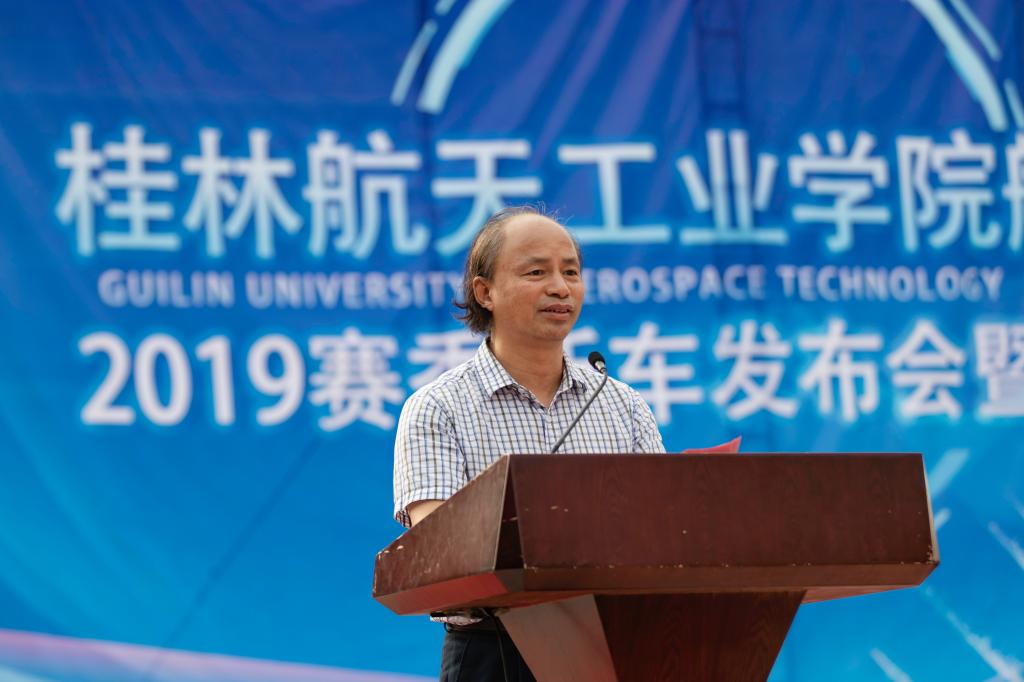 9月20日, 开云2019赛季新车发布会暨出征仪式正式举行,由在校师生自主设计、制造和调试的方程式赛车V-05号油车、航V-E03号电车崭新亮相。学校校长易忠、桂林市桂路通集团董事长程东、速才驾校总经理陈宁、学工处、校团委、教务处及各学院主要负责人出席发布会。