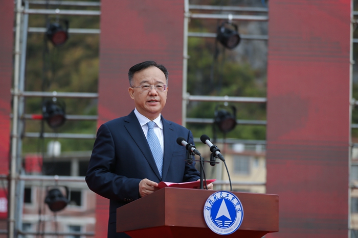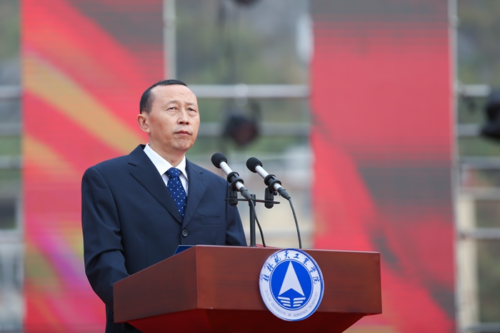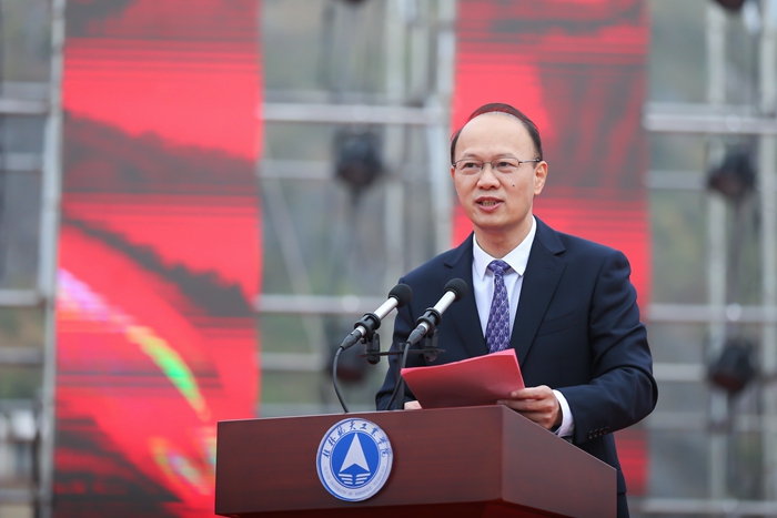 栾恩杰在大会上致辞。他说,40年来,我多次到访开云,见证了学校由中专起航,再由专科到本科的巨大跃升,学校人才培养水平不断提升、科学研究成果不断出新,服务航天、服务地方的能力不断增强。当前,中国正紧紧围绕建设“航天强国”战略,深入实施航天重大工程,推动空间技术、空间应用和空间科学全面发展,希望学校牢记“为航天培养专门人才”初心,凝练发展好航天特色,宣传弘扬好航天精神,接续传递好航天火炬,紧密对接中国航天事业需要,建设发展好航天类学科,为中国航天培养高水平人才,在建设航天强国道路上作出更大的积极贡献。