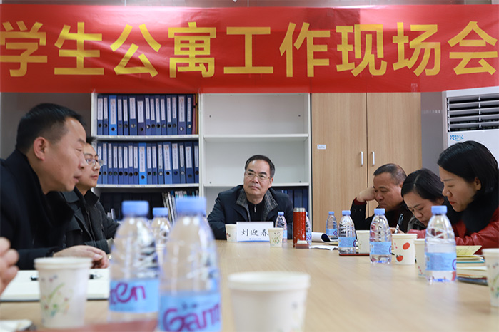 为切实谋划好2020年学生公寓管理工作,进一步推动教风学风一体化建设。12月24日下午,学校在北校区学生公寓园区召开学生公寓管理工作现场会,校党委副书记刘迎春出席会议,学工部(处)、保卫处、后勤处负责人,一至十院、国教学院分管学生工作负责人,学生公寓管理服务科全体人员、辅导员代表参加会议。