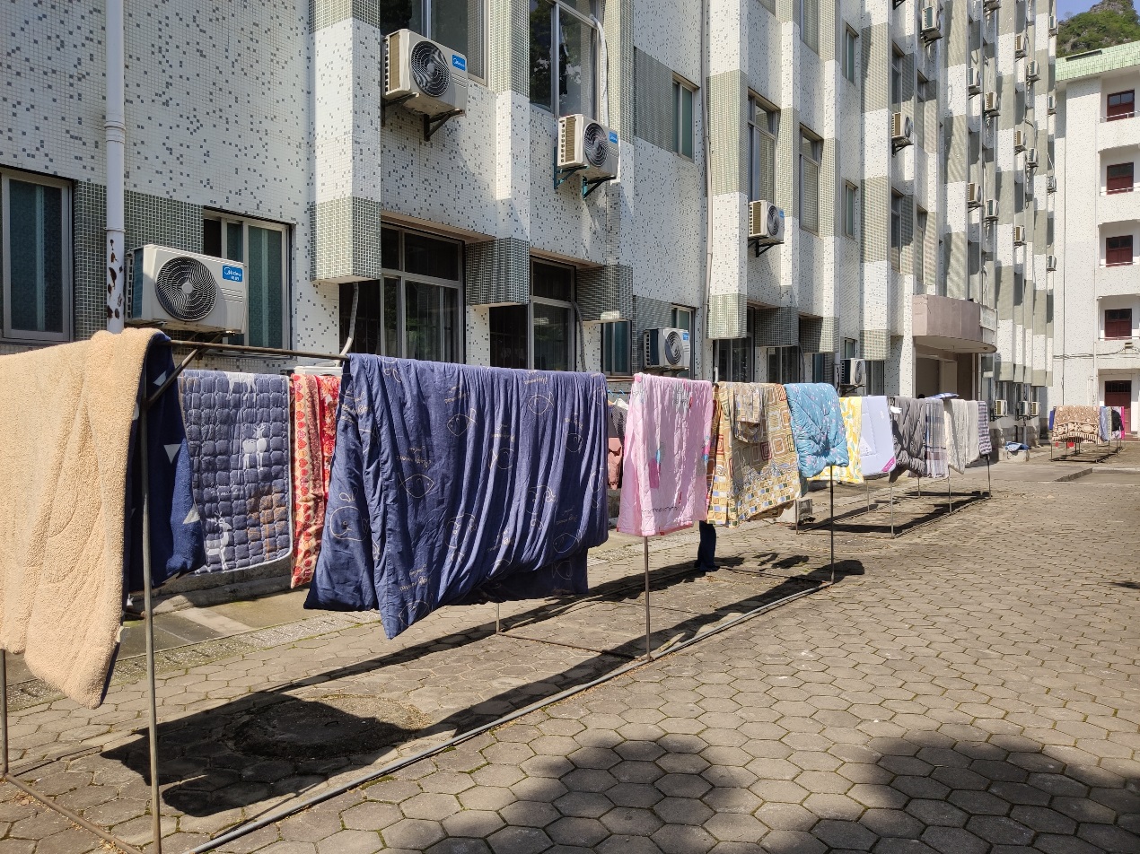 为使广大学子返校后能有一个舒适的居住环境,学生工作部(处)把握最近天气转暖、艳阳高照的时机,组织全体公寓管理员开展“在线接单”晒被子服务。广大学子通过各公寓楼栋群接龙、群留言等方式向公寓管理员提出申请,公寓管理员“在线接单”后按申请顺序逐一完成晾晒服务。此外,为防止被子晒后放错位置,细心的管理员们还在被子上贴上信息签,楼栋号、宿舍号、床位号等信息一目了然。