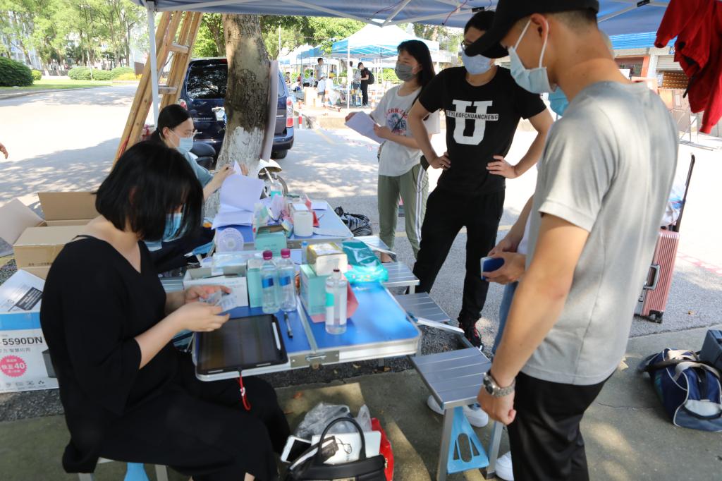 据悉,学校此次分别在机场、火车站、汽车站等处设置接送站点,安排专人、专线,点对点接送学生返校。在南北校区的大门口设置了学生返校通道,学校工作人员严格执行扫码核验、行李消毒、测量体温等流程,设立“党员志愿岗”,引导学生按照指定的单向路线井然有序地进入校园,并向返校学生们发放防疫宣传资料和防护物资,指导学生进行科学防护,用贴心、热情的态度迎接每一位同学的顺利返校。