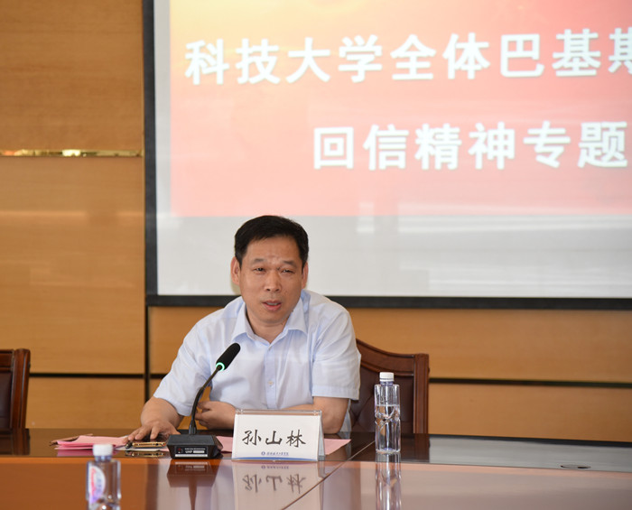 为深入学习贯彻习近平总书记给北京科技大学全体巴基斯坦留学生回信精神,5月26日下午,开云在飞天楼517会议室召开了专题学习会议。副校长孙山林出席会议,宣传部、学生工作部、国际教育学院相关负责人、对外汉语教师代表、在校来华留学生代表参加会议。