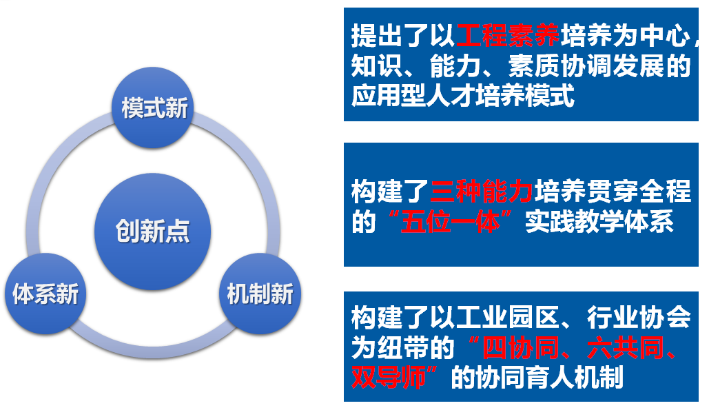 1、构建了“本科教育+工程素养、3.5+0.5”的人才培养模式,建立了一套以“知识、能力、素质协调发展”为主要特征的应用型人才培养方案;