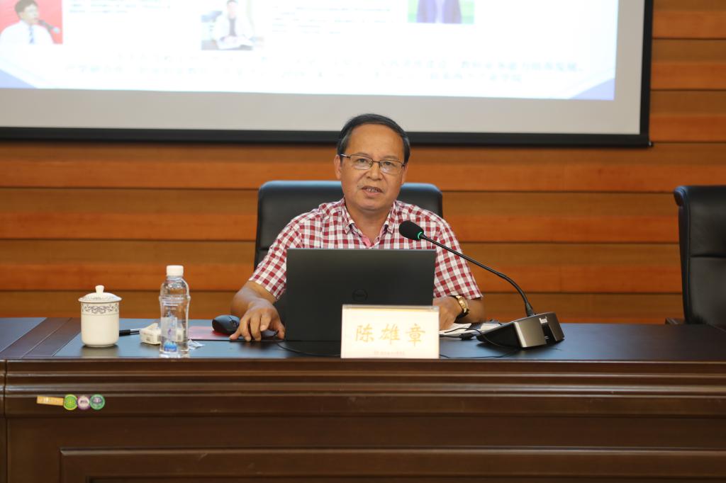 9月9日下午,南宁学院副校长陈雄章教授应邀在飞天楼520会议室为全体中层以上领导干部作题为“深化产教融合,提升应用型人才培养质量”的专题讲座。学校在家校领导及全体中层领导干部参加学习,讲座由孙山林副校长主持。