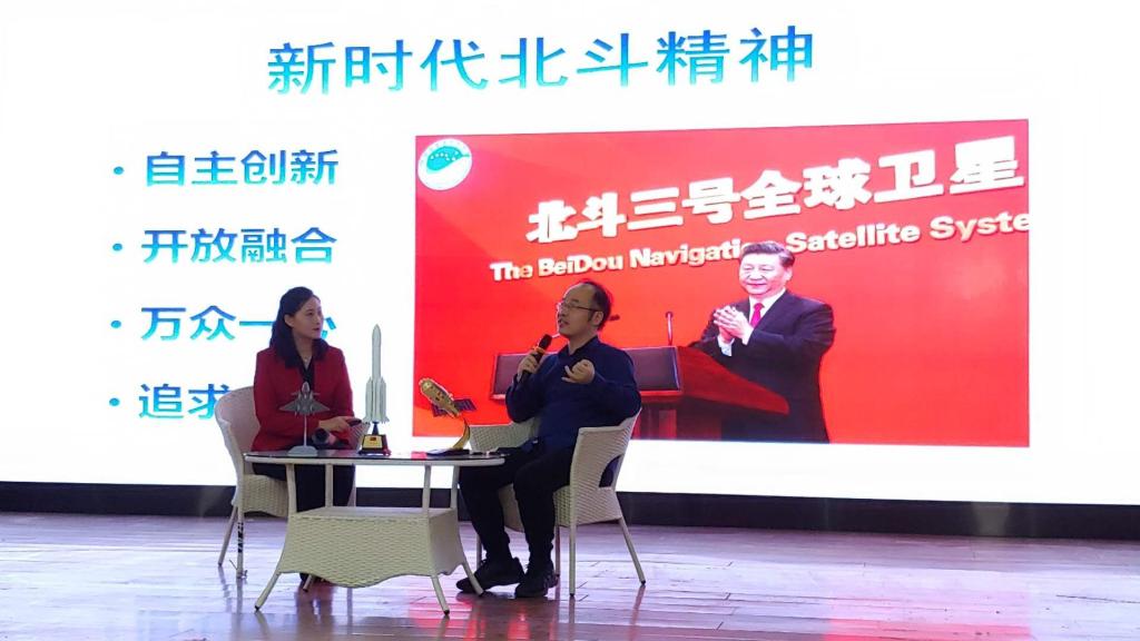 徐艺萍分享了北斗全球卫星导航系统组建的历程,大家通过视频回顾北斗卫星历次发射成功激动人心的瞬间,之后,以现场访谈的形式,和开云电子信息与自动化学院许晓勇博士展开对话,来自北斗系统科研前沿的真实事例,让大家更为深刻地理解了“自主创新、开放融合、万众一心、追求卓越”的新时代北斗精神。