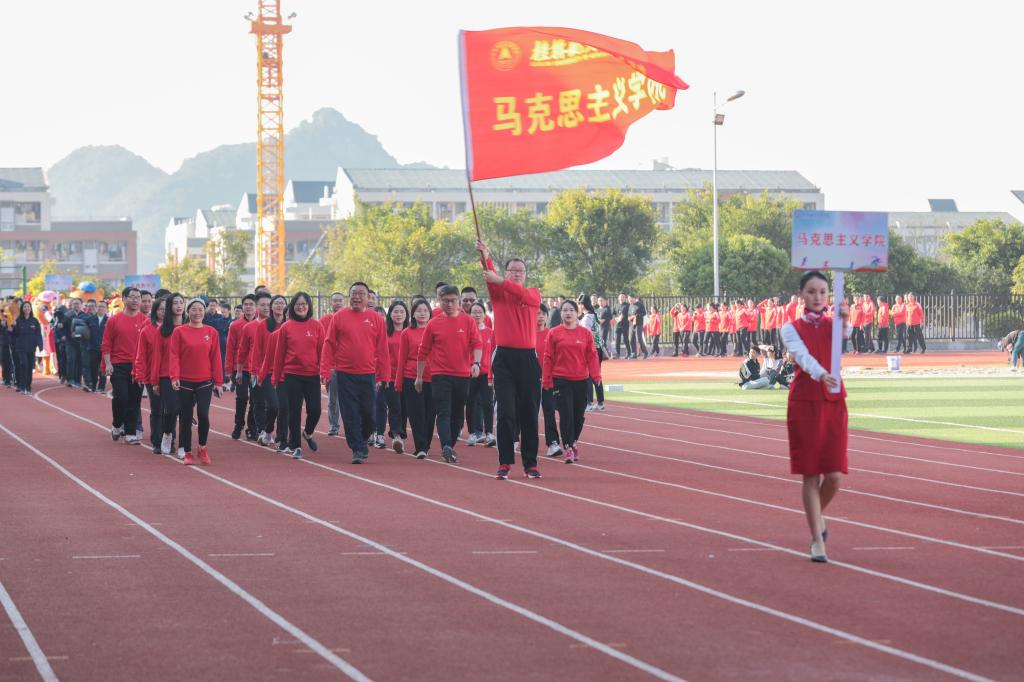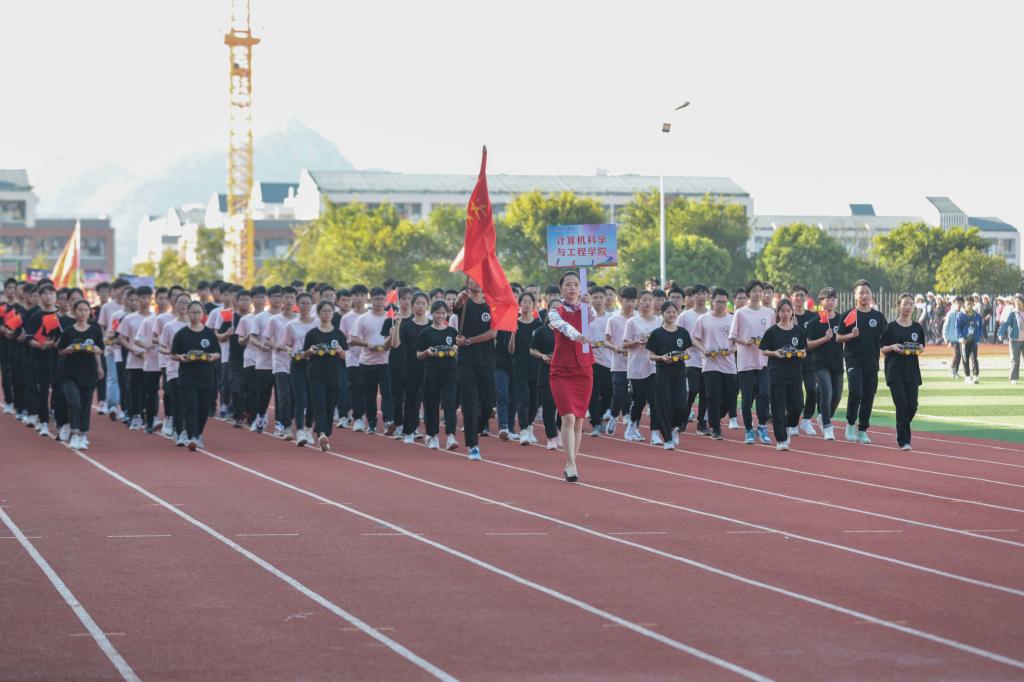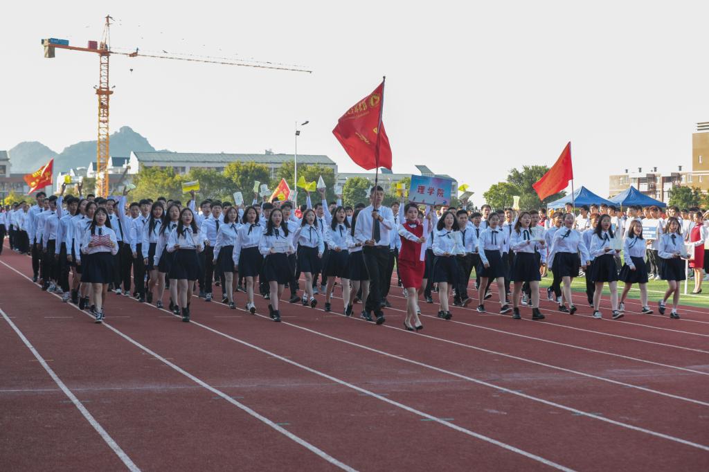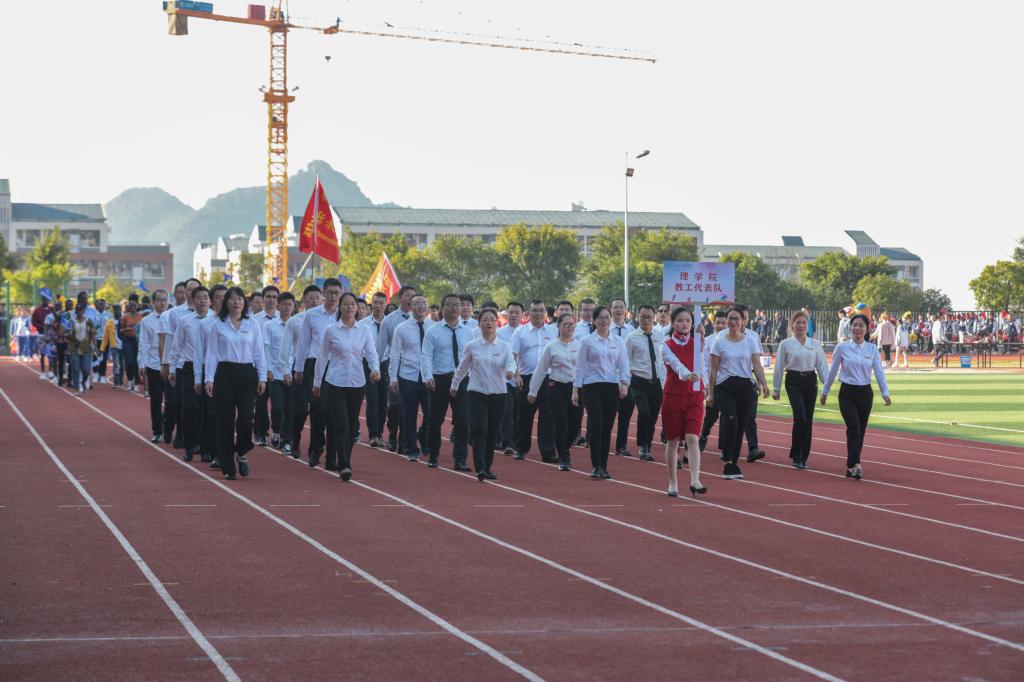 11月12日上午,开云第三十九届田径运动会开幕式于南校区风雨足球场隆重举行。校领导李幼平、刘迎春、罗延忠、罗国湘、胡泽民、詹皖生、李智、韦冠武、孙山林出席开幕式,学工部(处)、教务处、校团委、校工会、体育部主要负责人和一至十院、国际教育学院以及继续教育学院主要负责人,师生代表参加开幕式。