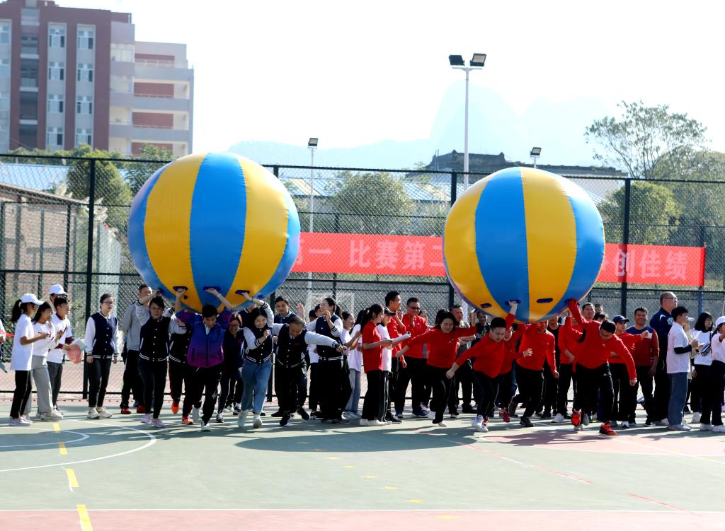 为培养教职工团结协作、顽强拼搏的精神,丰富教职工体育文化生活,11月12日上午,由校体委、校工会主办,第一分工会协办的教职工趣味运动会于南校区塑胶篮球场欢乐召开。各分工会共计二十个参赛队参与此次趣味运动会。